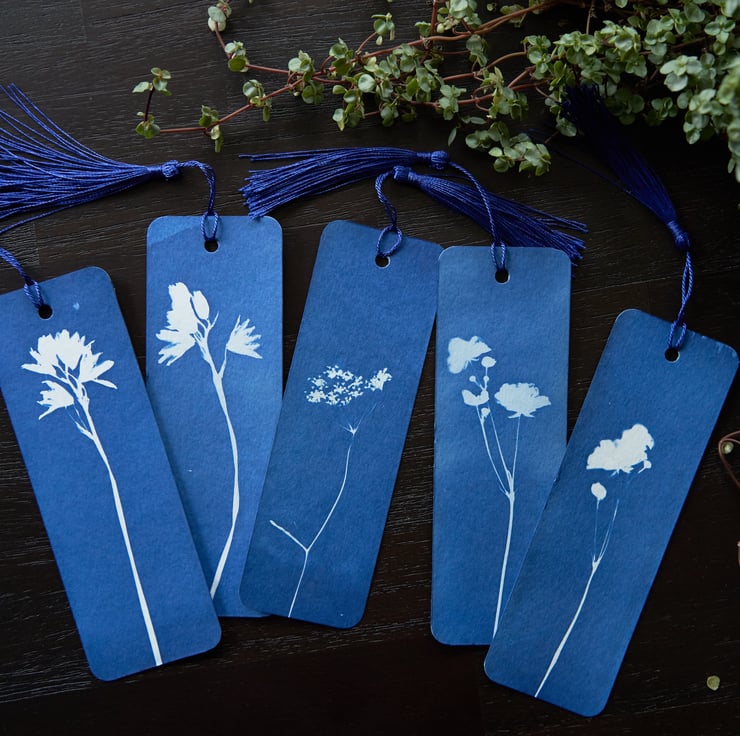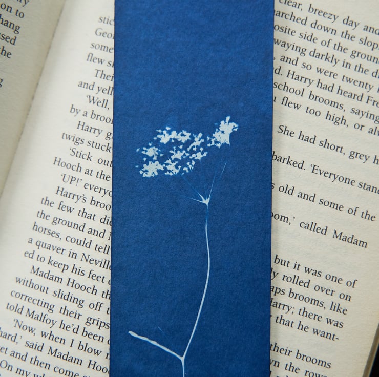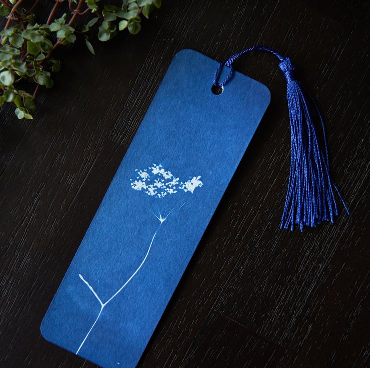 - there may be some markings on the back of the bookmark left from the process of creating and developing the cyanotype
