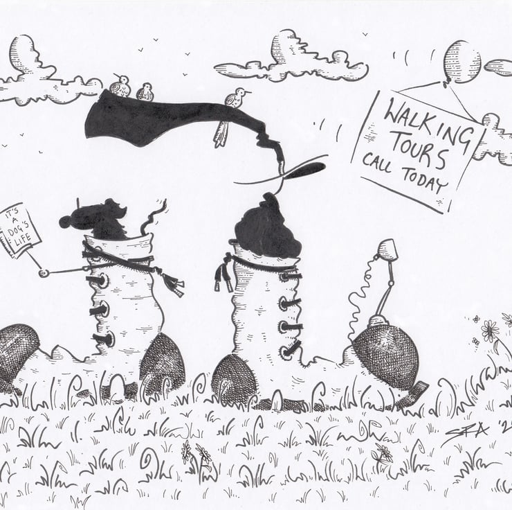 This was originally drawn for Day 3 of the 2024 Inktober event. The prompt was, not surprisingly, 'Boots'. As with most of my work I draw the picture and then work out what is actually taking place. It's the reverse of what most people expect.