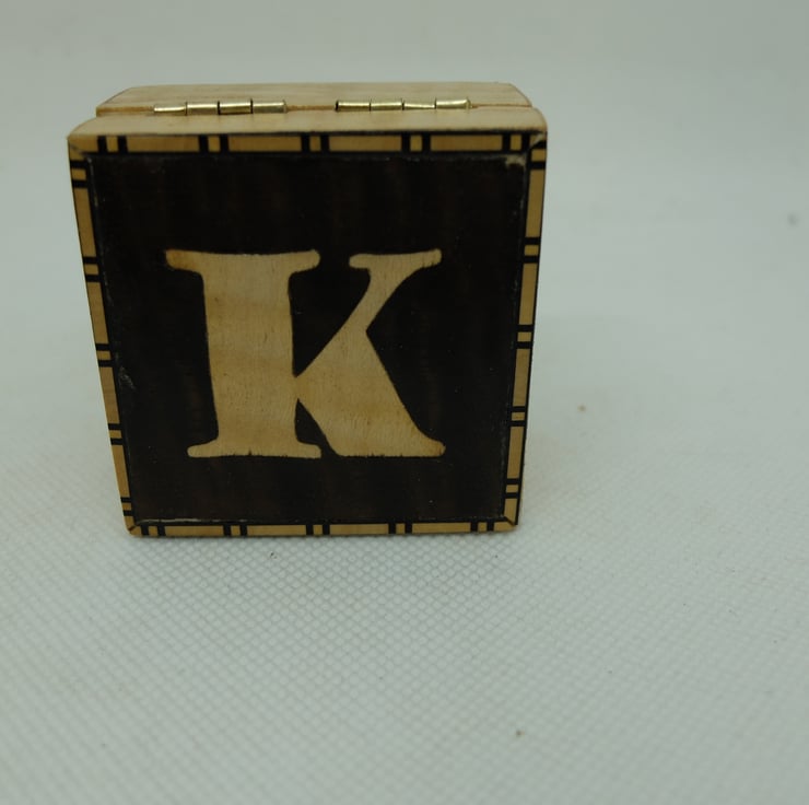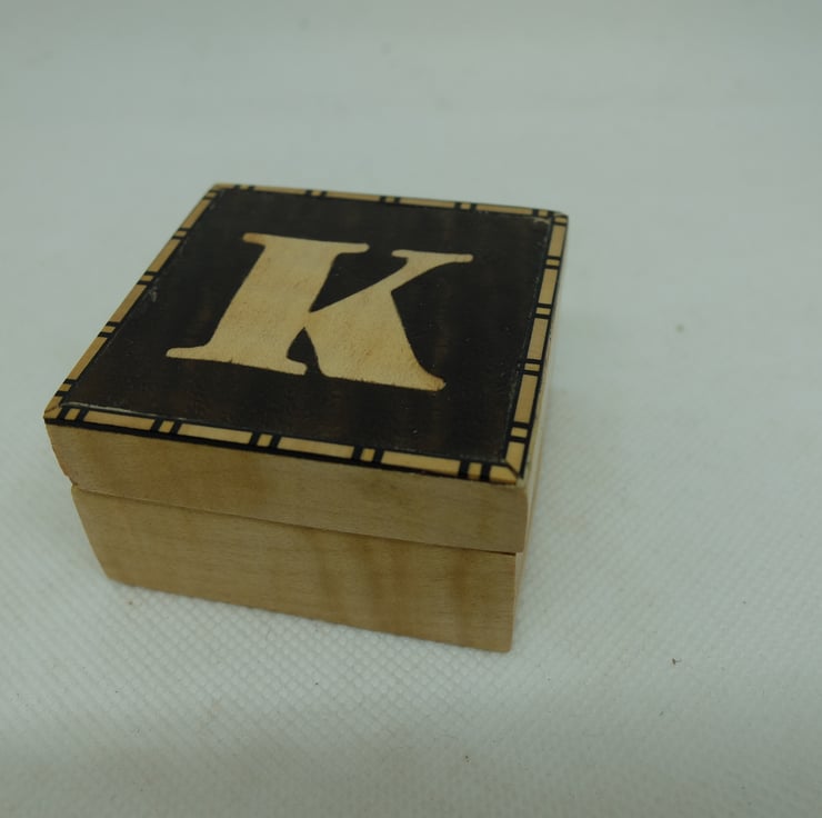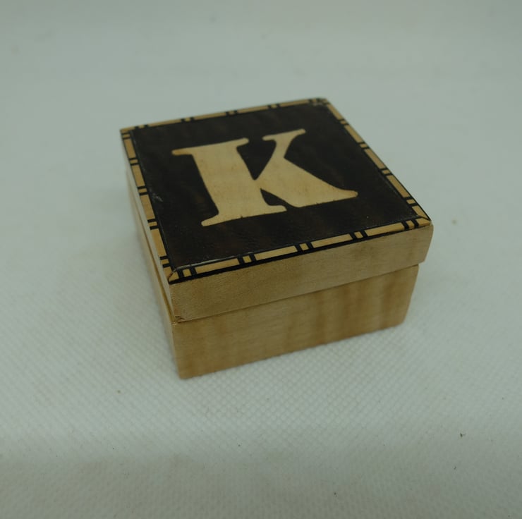 I have made quite a few small wooden boxes with veneered initial letters to the lids.