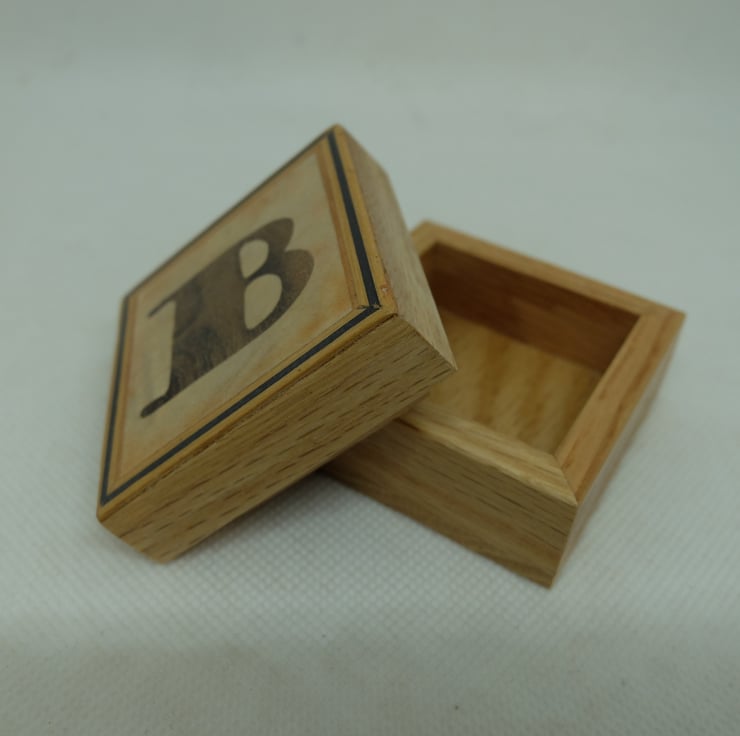 I have made quite a few small oak boxes with veneered initial letters to the lids.