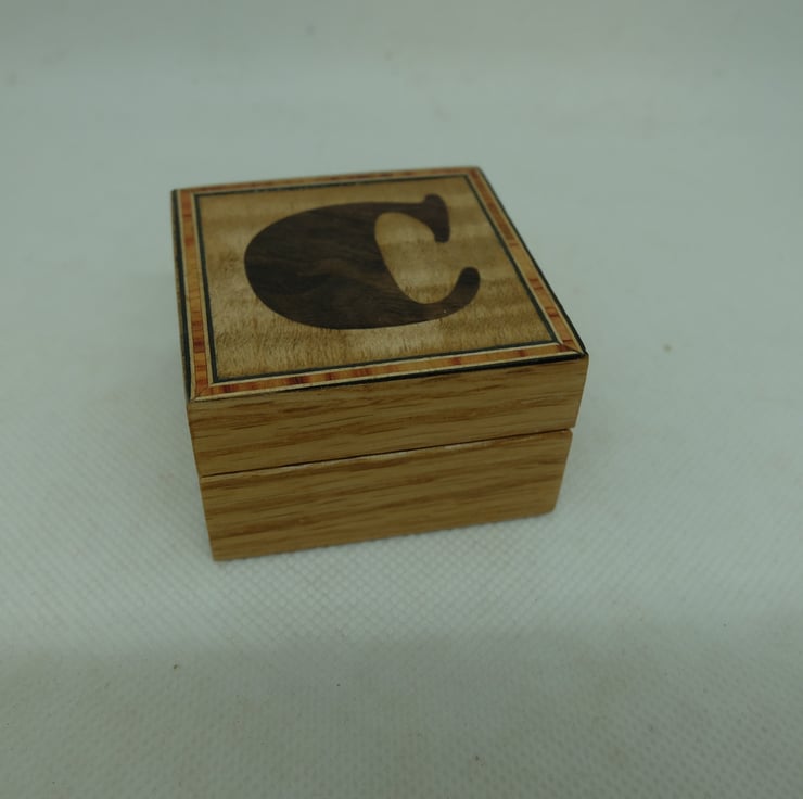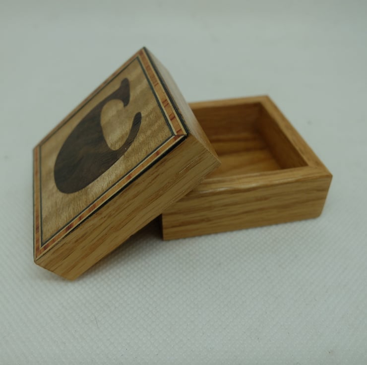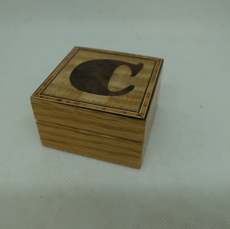 I have made quite a few small oak boxes with veneered initial letters to the lids.