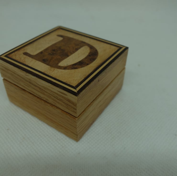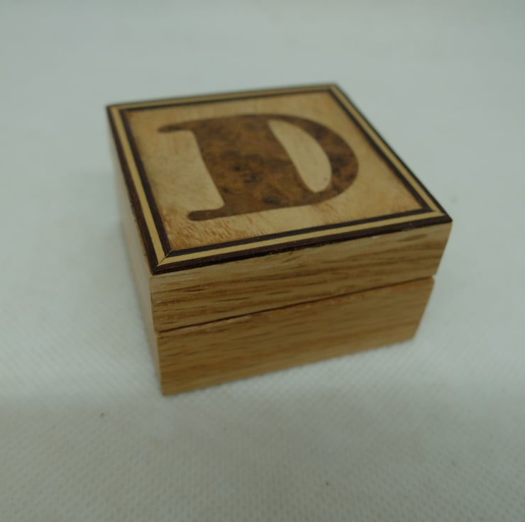 I have made quite a few small oak boxes with veneered initial letters to the lids.