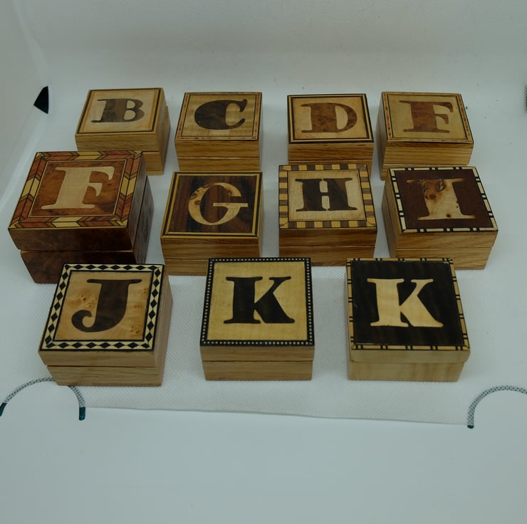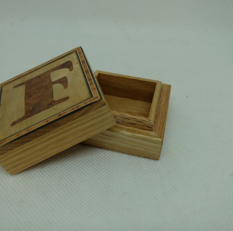 I have made quite a few small oak boxes with veneered initial letters to the lids.