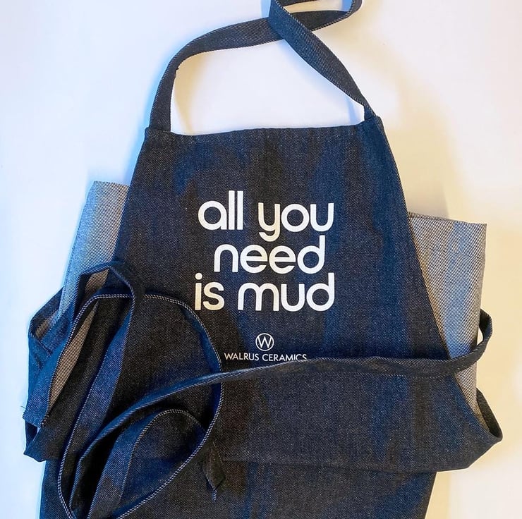 I designed bags for the potters who come to my classes (see my other listing) and thought that an apron would be a great idea too! I wanted thick quality denim fabric and was so pleased when I found these- I love how my design looks screenprinted on the apron front adn they keep you clean and dust free when potting too.