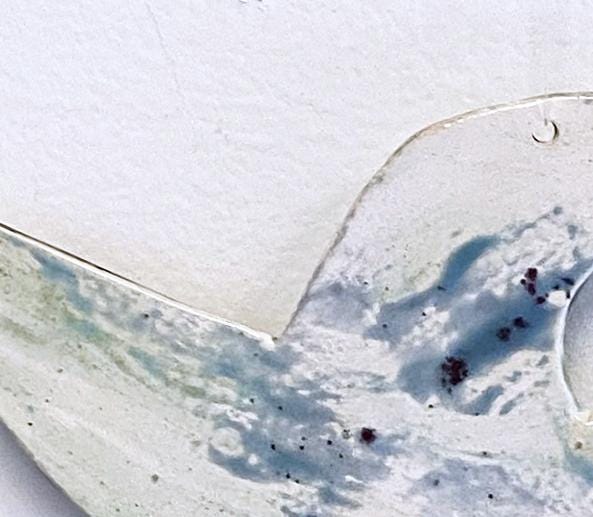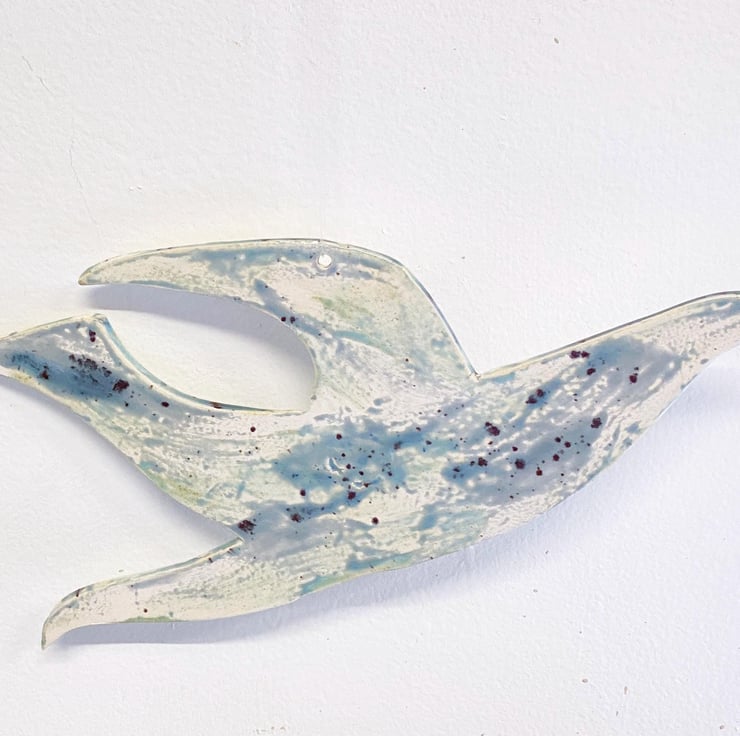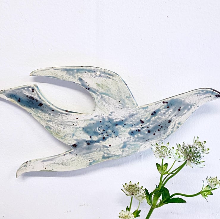 Hand made ceramic hanging bird, painted by hand with glazes inspired by the Norfolk countryside and coast. This bird is 24cm wide & it has a thickness of around 4mm. This is one of my large birds, others are available in two smaller sizes should you want a set.