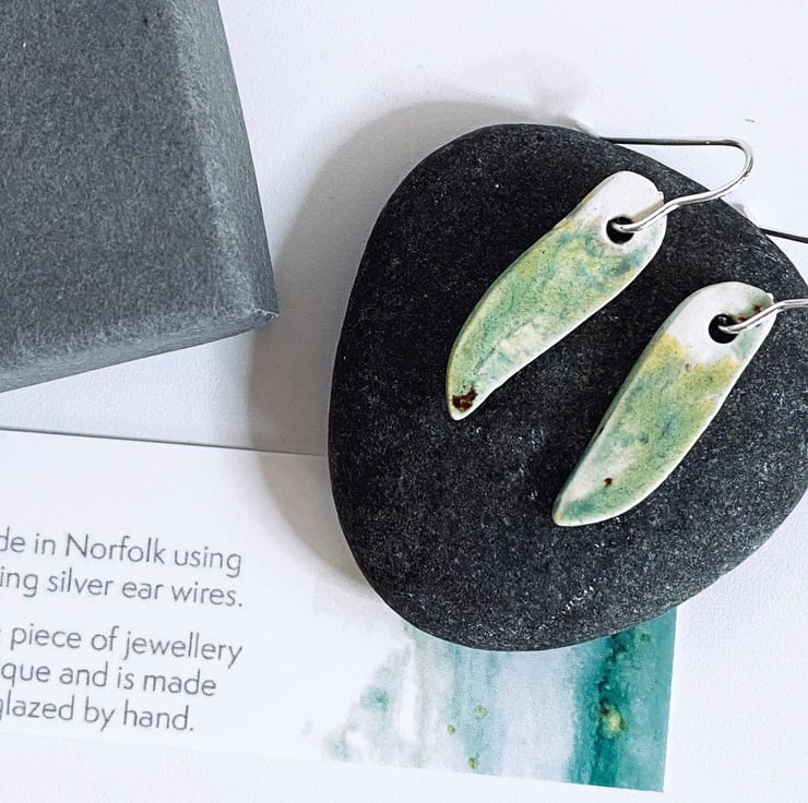 All my jewellery is influenced by the countryside in Norfolk where I live. I glaze each piece of ceramic by hand with care and so once the kiln works its magic, each item is unique.