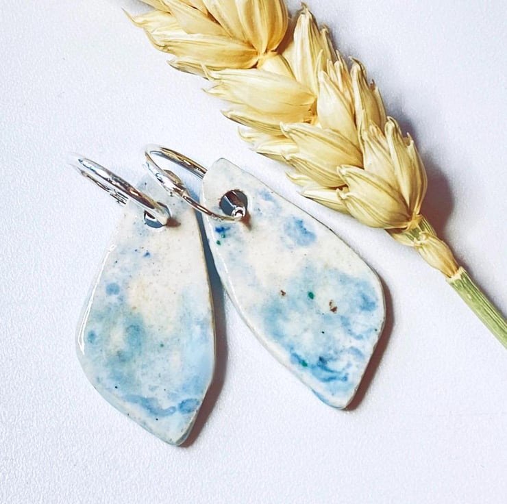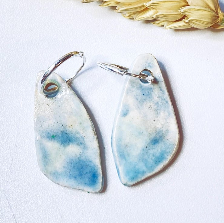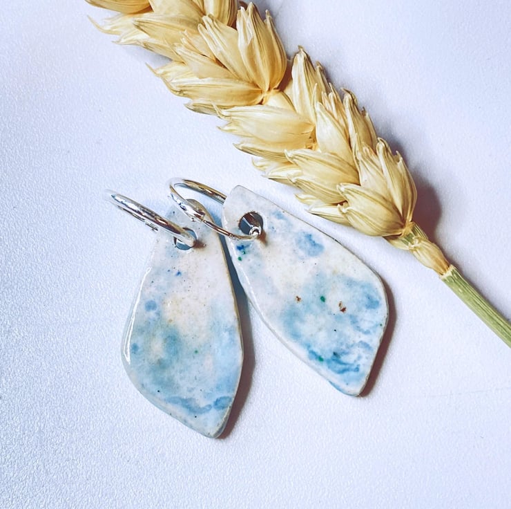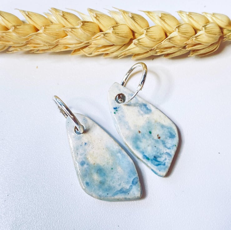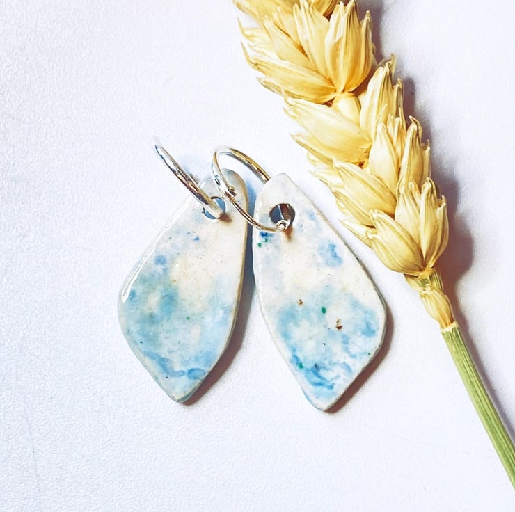 These earrings were inspired by the shapes of beach pebbles and my glazing is inspired by the Norfolk coastline. Every piece I make is glazed by hand and so no two pairs are the same.
