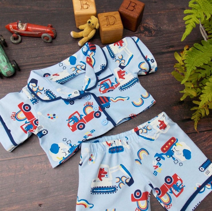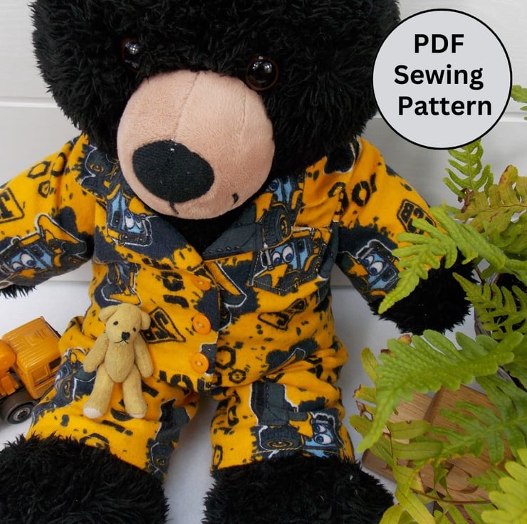 Sew an adorable pair of teddy bear pyjamas with our easy-to-use sewing pattern. Designed for confident beginners, the teddy bear pyjamas will fit 16-18 inch teddy bears, such as Build a Bear and some memory bears. The teddy bear pyjamas can be sewn with or without the piping.