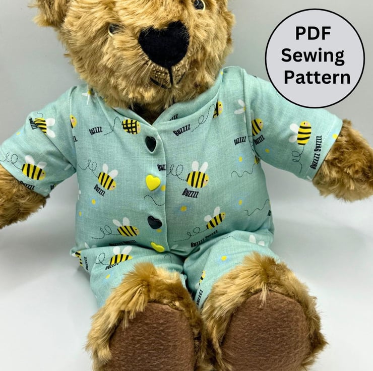 Sew an adorable teddy bear sleepsuit with our easy-to-use sewing pattern. Designed for confident beginners, the teddy bear onesie will fit 16-18 inch teddy bears, such as Build a Bear