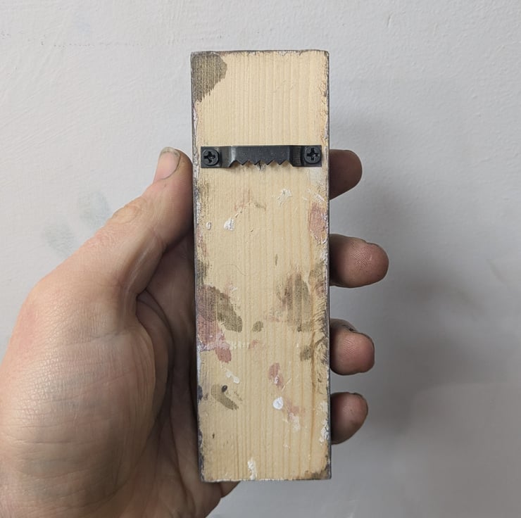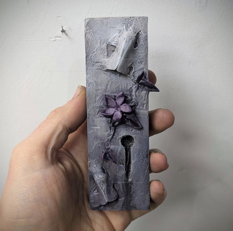 This one measures 4x12cm and has a metal fixing on the back allowing it to be hung directly onto a wall using a small nail or screw.