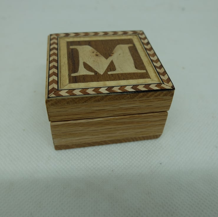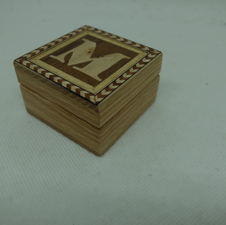 I have made quite a few small oak boxes with veneered initial letters to the lift off lids.