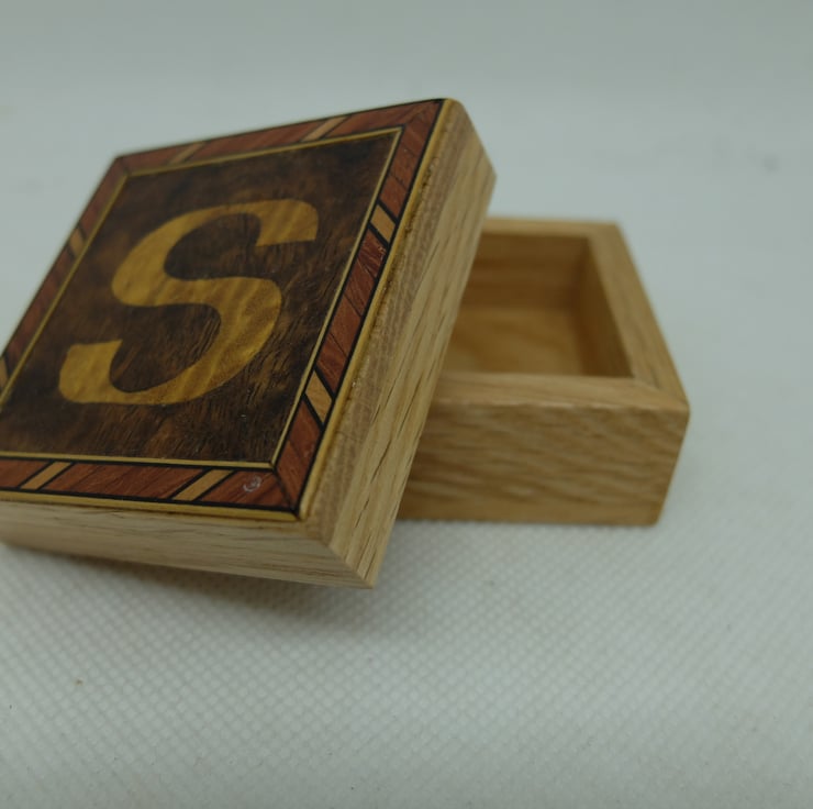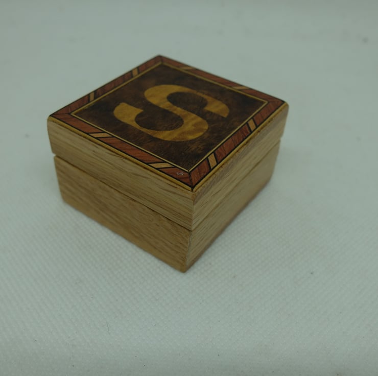 I have made quite a few small oak boxes with veneered initial letters to the lift off lids.