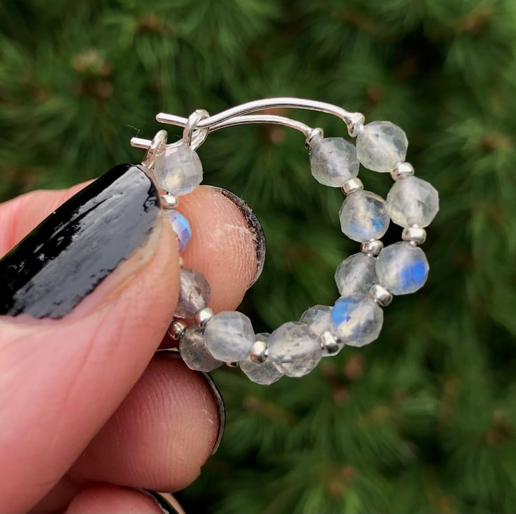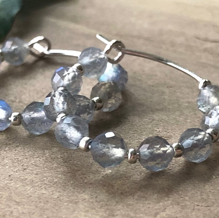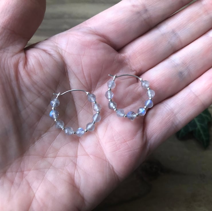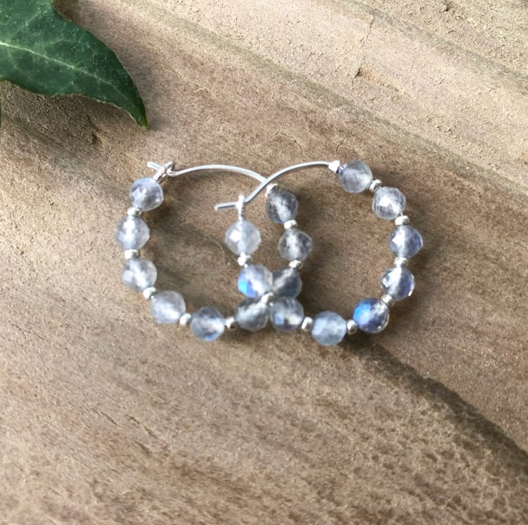 Cute little Labradorite hoops with the Wintery feel of sparkly ice.