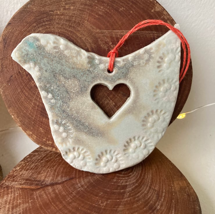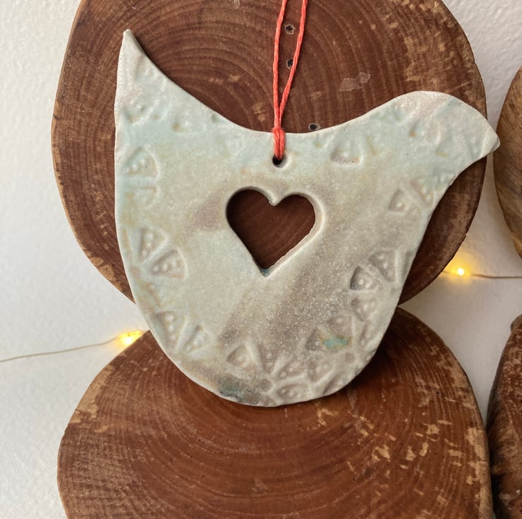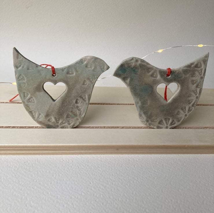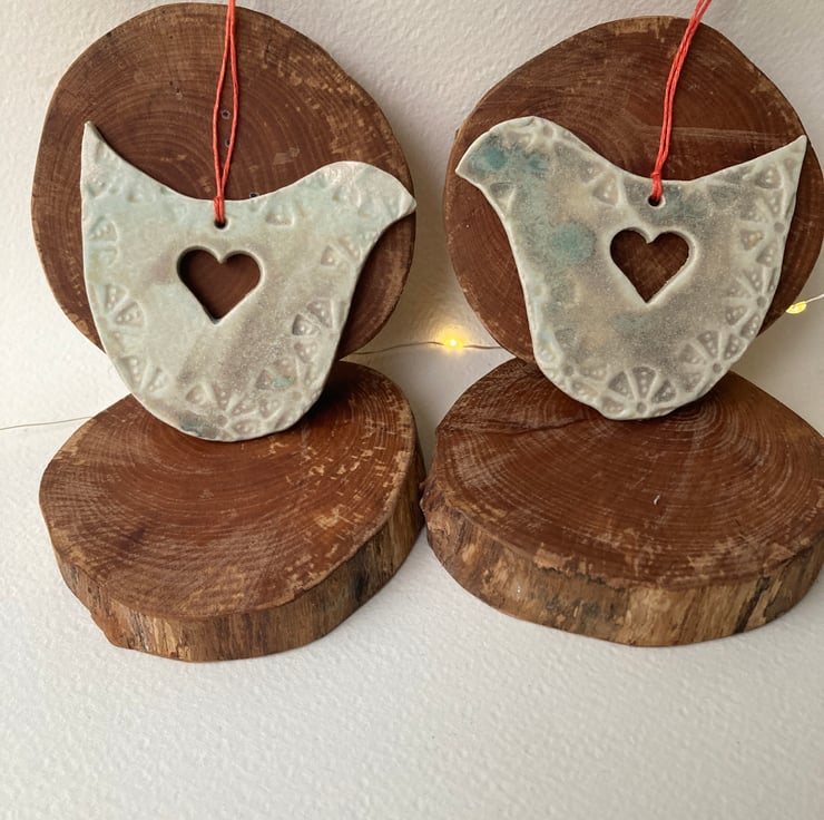 Sold as a pair with a cut out heart and marks made by my own ceramic stamps.
