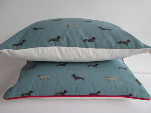 Sophie Allport Dachshunds  Cushion with Black Piping
