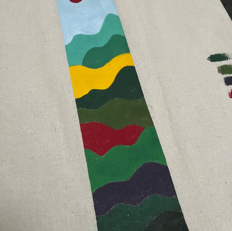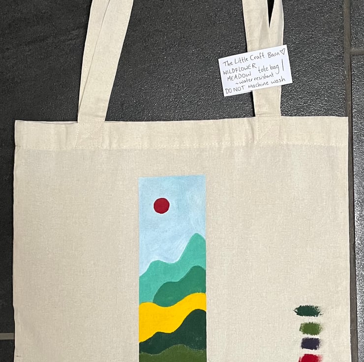 These cotton tote bags are hand-painted with acrylic paints. This unique, one of a kind design is inspired by a wildflower meadow. It is one of multiple designs - take a look at my shop page to find others that are available. This design is the only bag with an additional colour palette down the side.