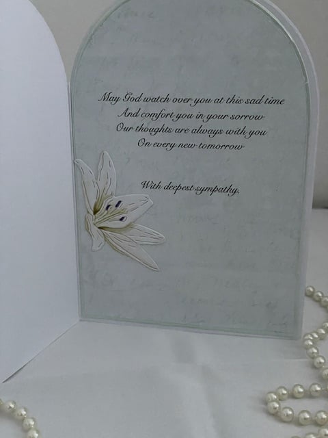 Our condolence card is made from high quality white 250gsm with a delicate floral design. Card Size: 7 x 5 inches approximately.