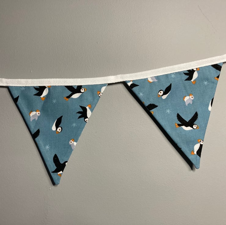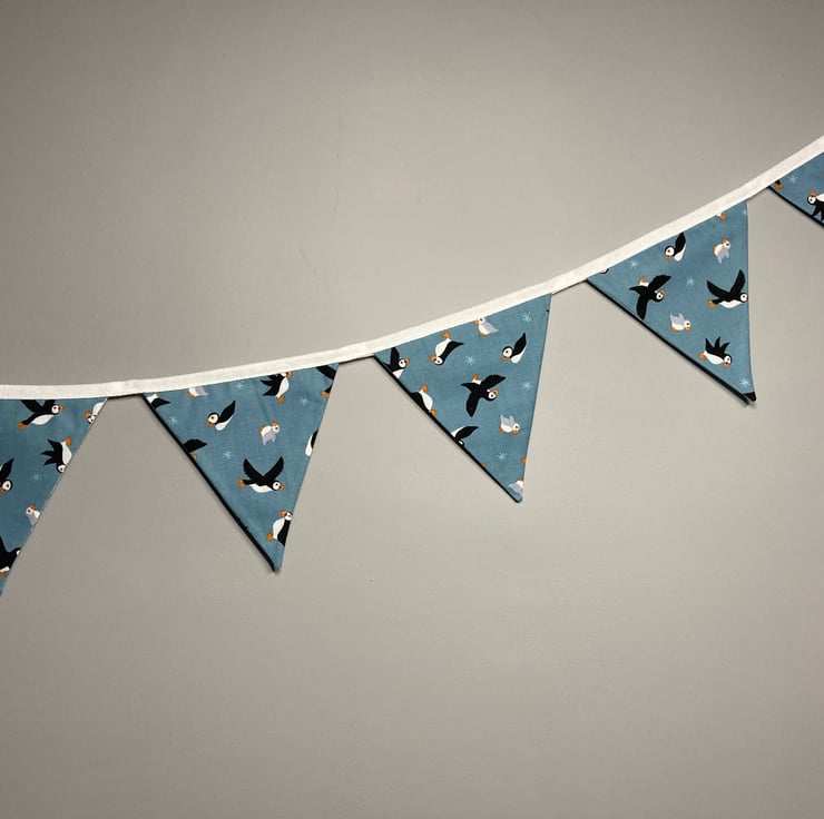 This gorgeous bunting is made with quality cotton fabric from the Puffin Bay collection by Lewis & Irene.