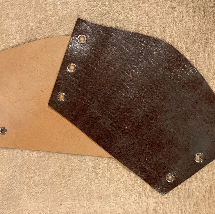 The leather purchased in the pre-dyed antiqued brown colour that you see and has a weight of roughly 1-2oz.