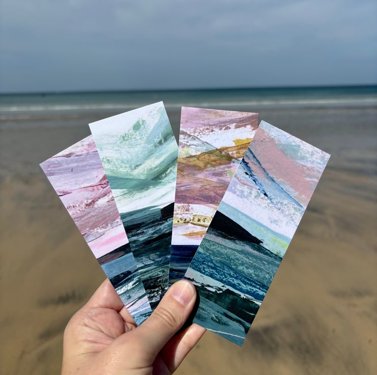 I adore being by the sea - the wild peace, rugged beauty and vast space. All my work is inspired by these feelings of space, calm and peace. I hope that my seascape bookmarks transport you to the sea every day so that you can feel your connection to the ocean in your own home, whenever you need to.