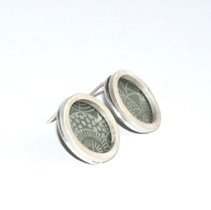 I then cut the shapes for the earrings and rivet them to a sterling silver framework made from square silver wire. The ear posts are also made from sterling silver and are soldered to the silver framework. Please note each pair may vary slightly from the image.