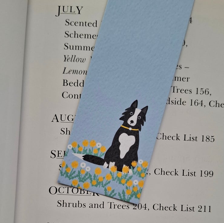 My border collie illustration professionally printed in the UK on a beautiful hammered fresco gesso 300gsm card and made into a bookmark