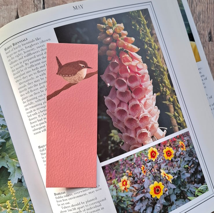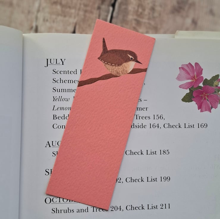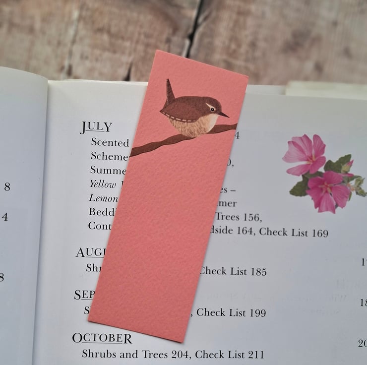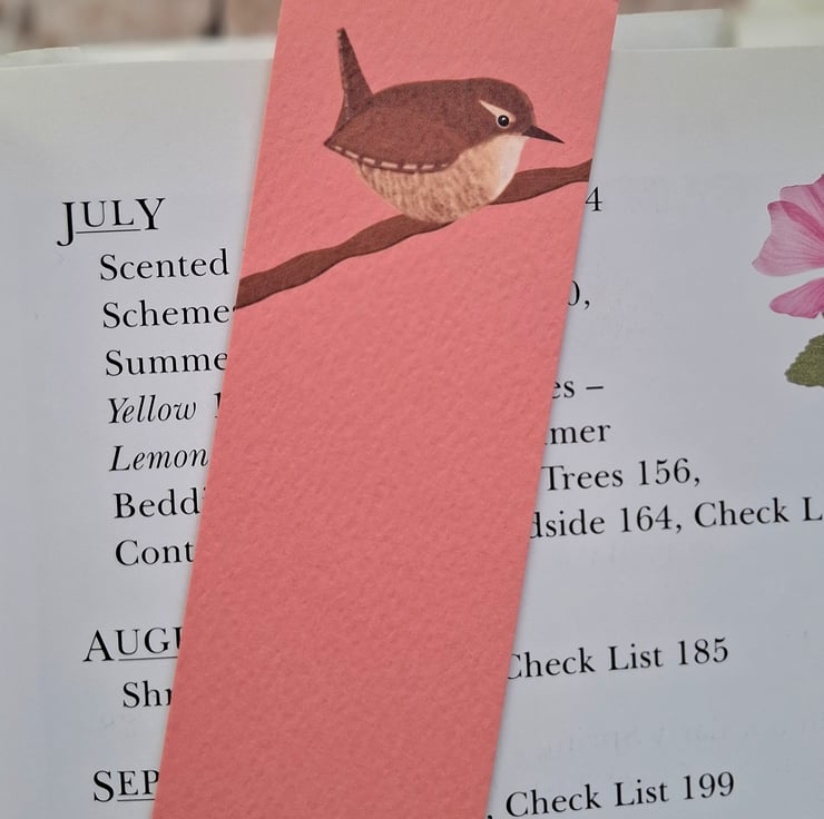 My wren illustration professionally printed in the UK on a beautiful hammered fresco gesso 300gsm card and made into a bookmark