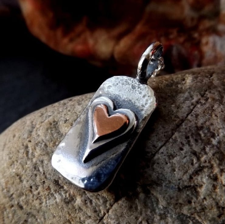 Silver and copper look good together , and this pendant does that . I always like to touch jewellery I am wearing , and this is a great tactile piece , and warms to the touch ,