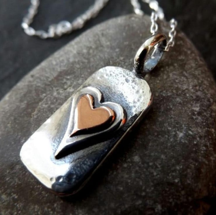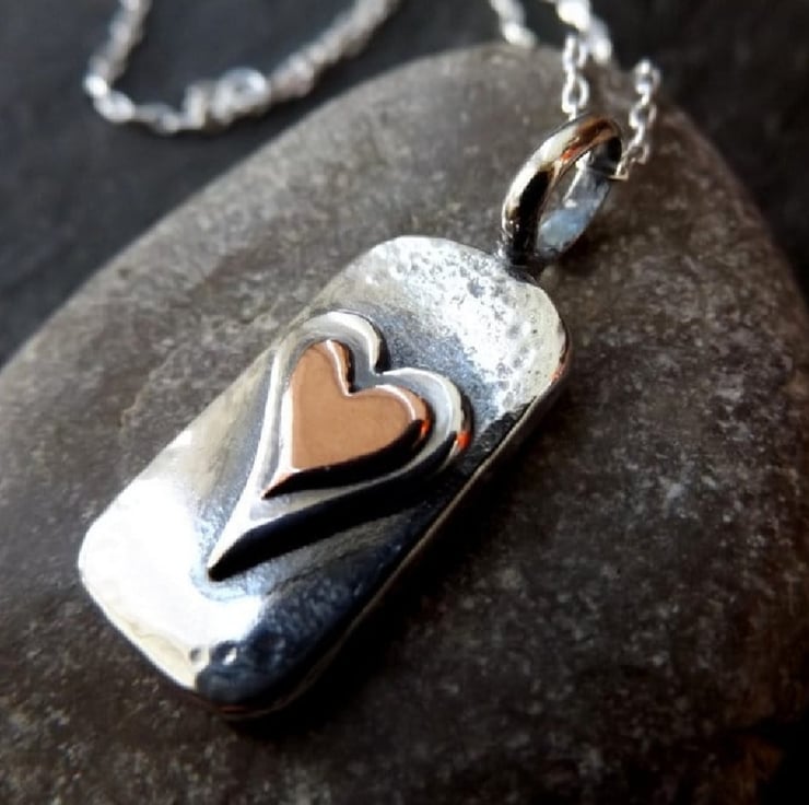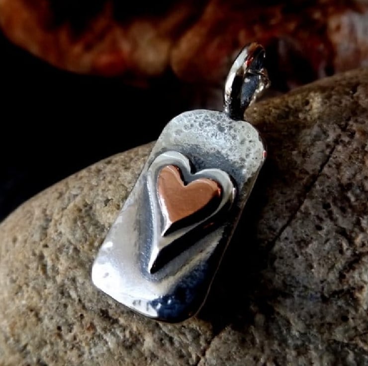 Silver and copper look good together , and this pendant does that . I always like to touch jewellery I am wearing , and this is a great tactile piece , and warms to the touch ,