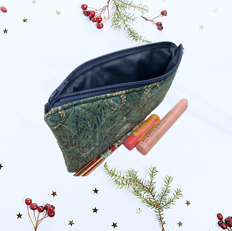 Little purse in the iconic Liberty Hera design fabric, lined with ripstock. Lots of uses: makeup pouch, sewing bag.....very handy and a joy to use. Approx. 7" x 5".