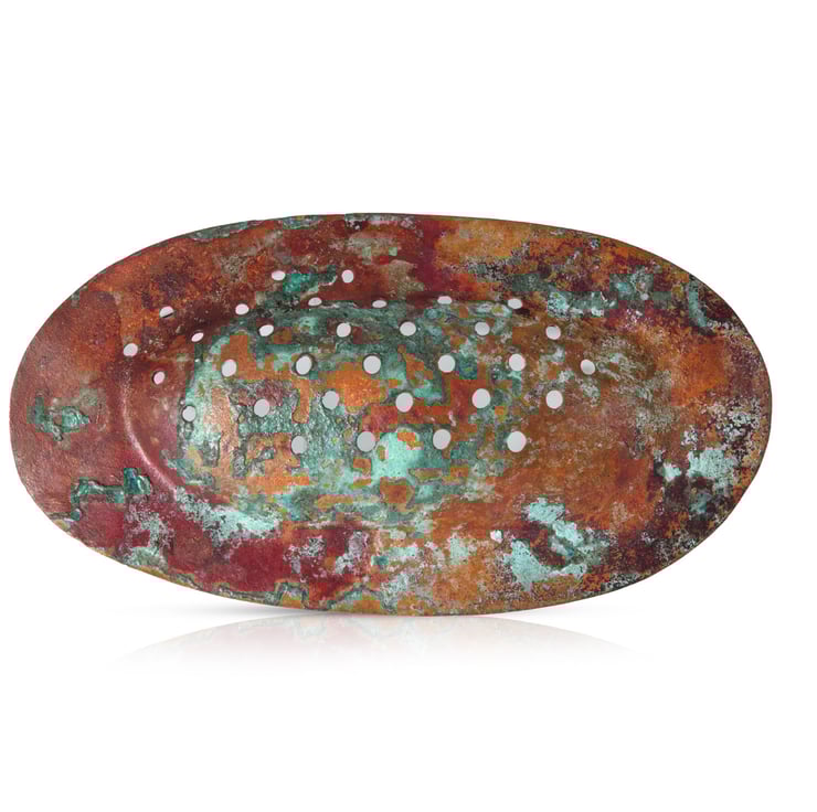 The verdigris patina is created using natural household materials like salt and soil, resulting in an organic, unpredictable transformation that makes every brooch truly one of a kind. Rich hues of green, turquoise, and rust beautifully capture the timeless charm of weathered copper.