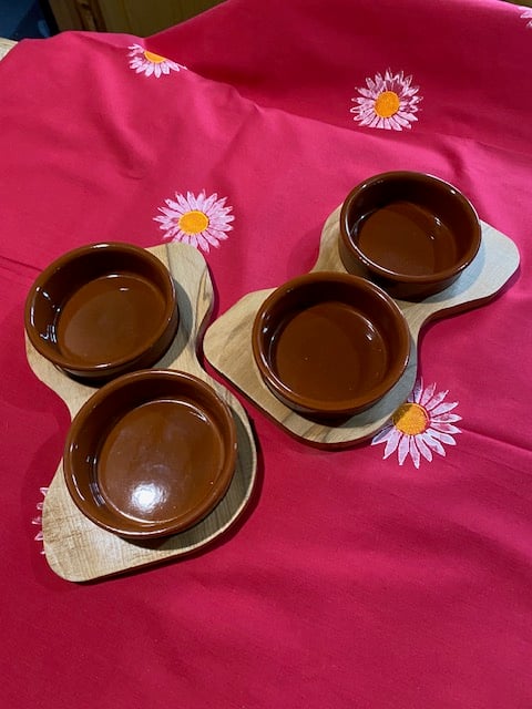 2 Cherry wood transporting trays for 2 tapas dishes.