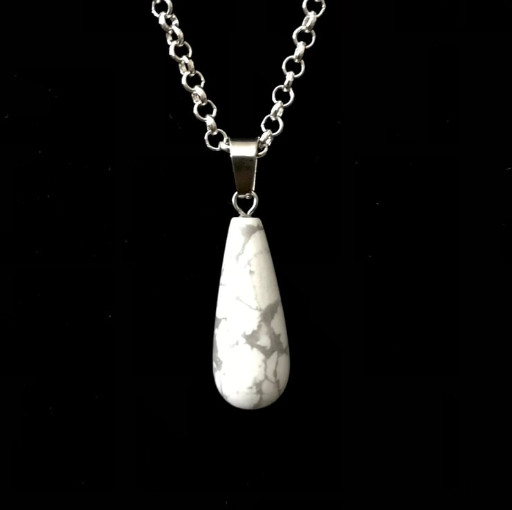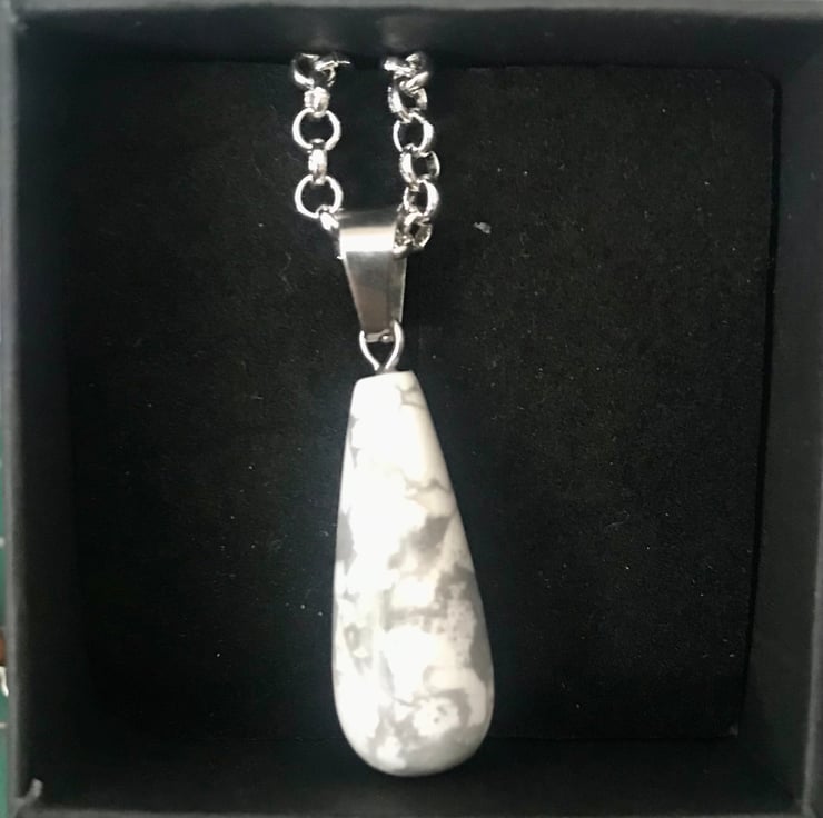 Beautiful 25mm White Howlite Drop Pendant on 16” Silver Chain Boxed - Perfect Gift