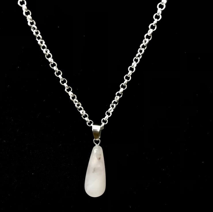 A 16” silver plated belcher chain necklace featuring a polished semi precious White Howlite drop pendant. Pendant size 25mm. If you would like a longer chain please message me. This is a perfect gift as it comes in a small black box. If requested on purchase I will gift wrap and send direct (within UK), just message me the details.