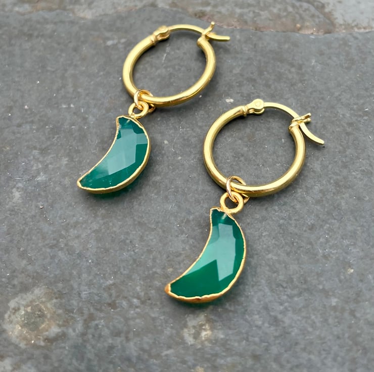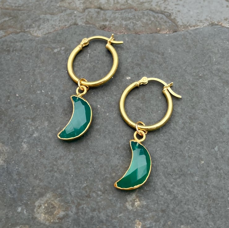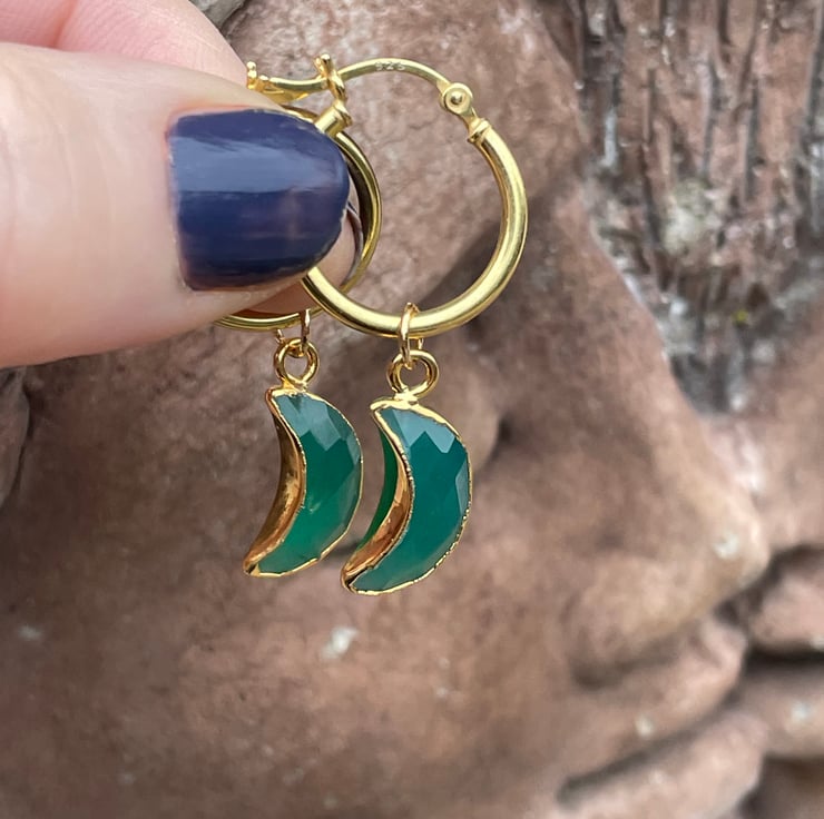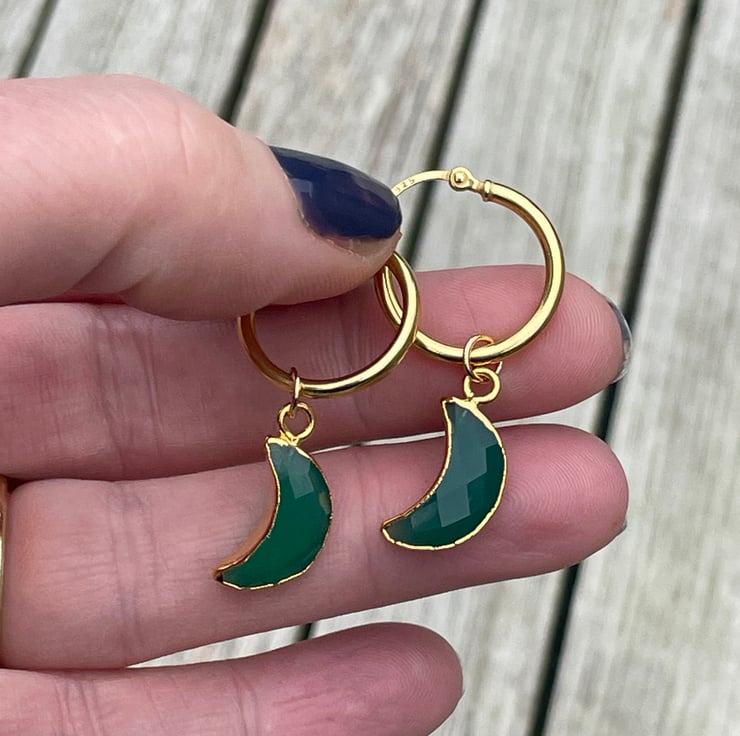 20mm Vermeil Hoops with Green Onyx Crescent moons.