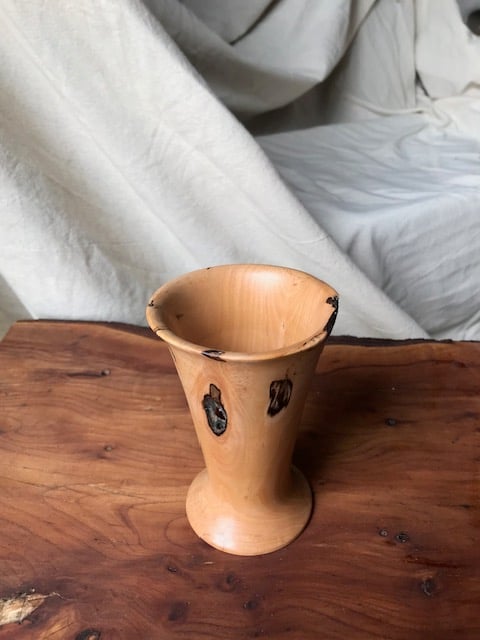 Vase turned from Hawthorne, dry flowers only.