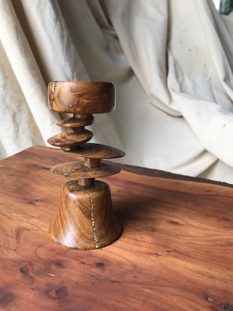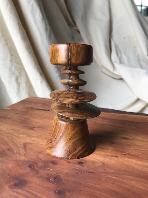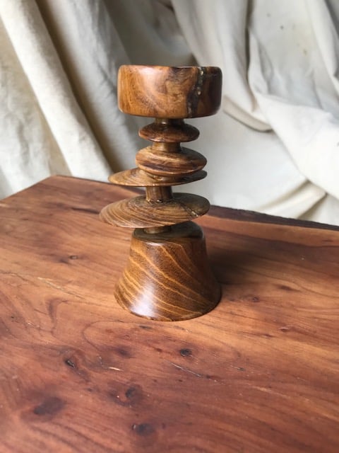 An eccentric turned tea light holder.