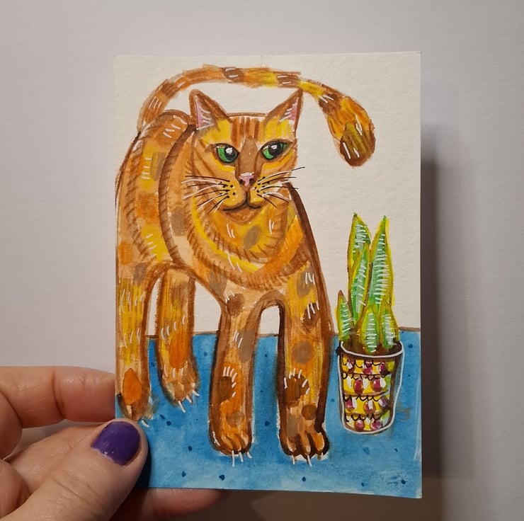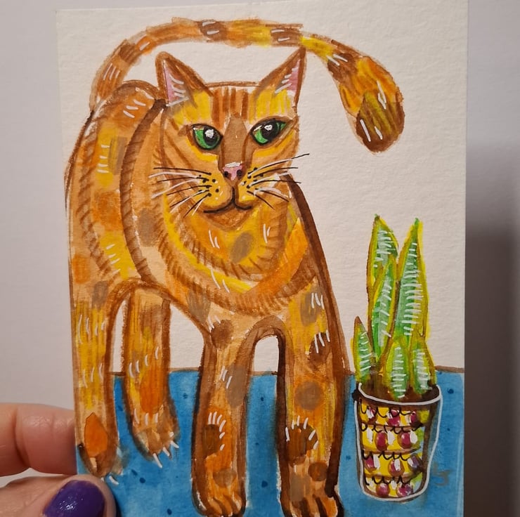 I love painting cats and plants, I like their shape and the endless possibilities to make them colourful and decorate them.