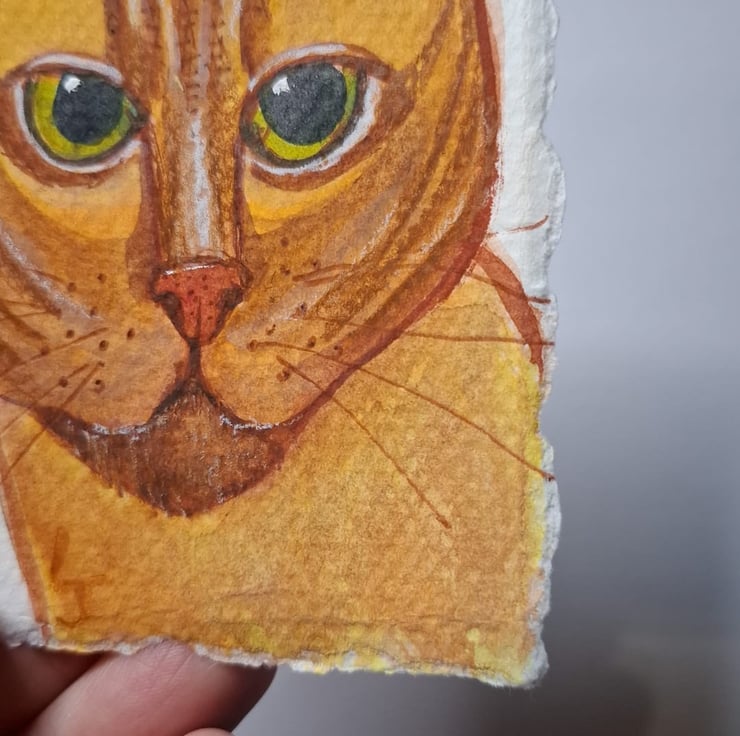 It is unframed and measures approx 11cm x 8cm, it is painted onto heavy watercolour stock and has torn edges meaning it does not need a mount in the frame as the torn edges are part of the design.