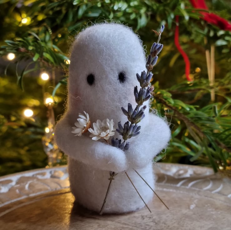 Sweet and spooky, this little ghost is searching for its final resting place.