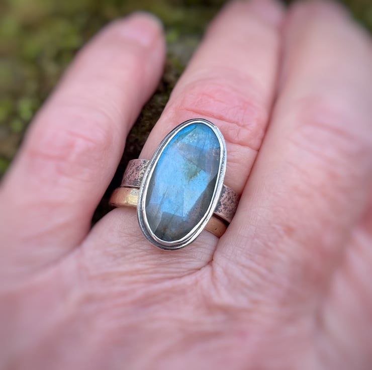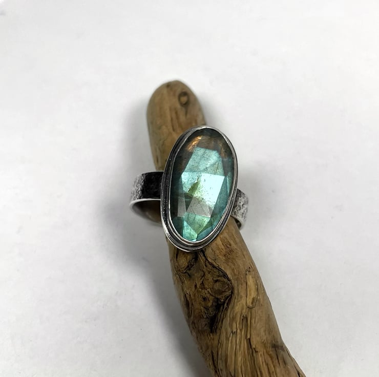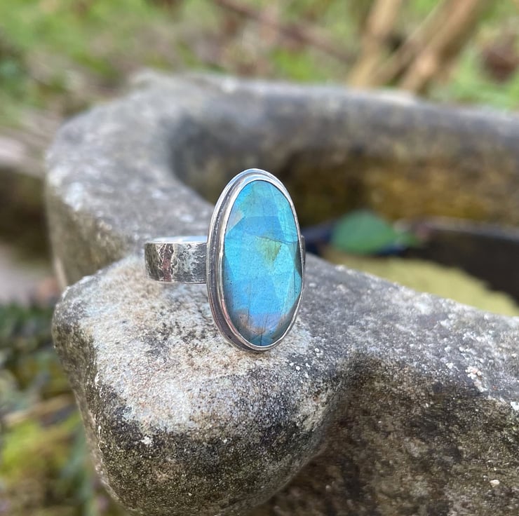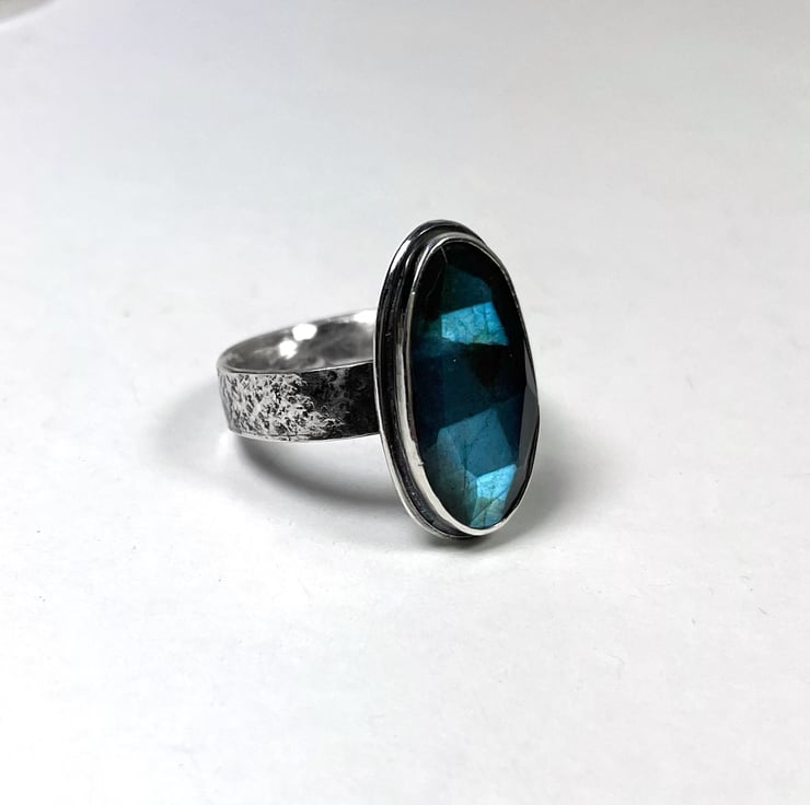 A flashy faceted oval labradorite set in oxidised silver.