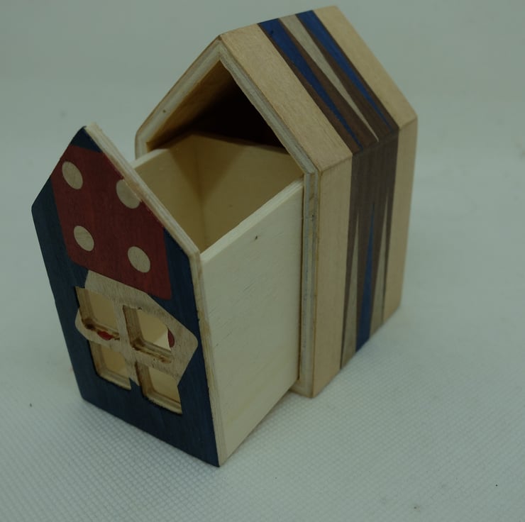 One of my small house shaped trinket boxes with a pull out drawer. Looks great with an electric night light inside.