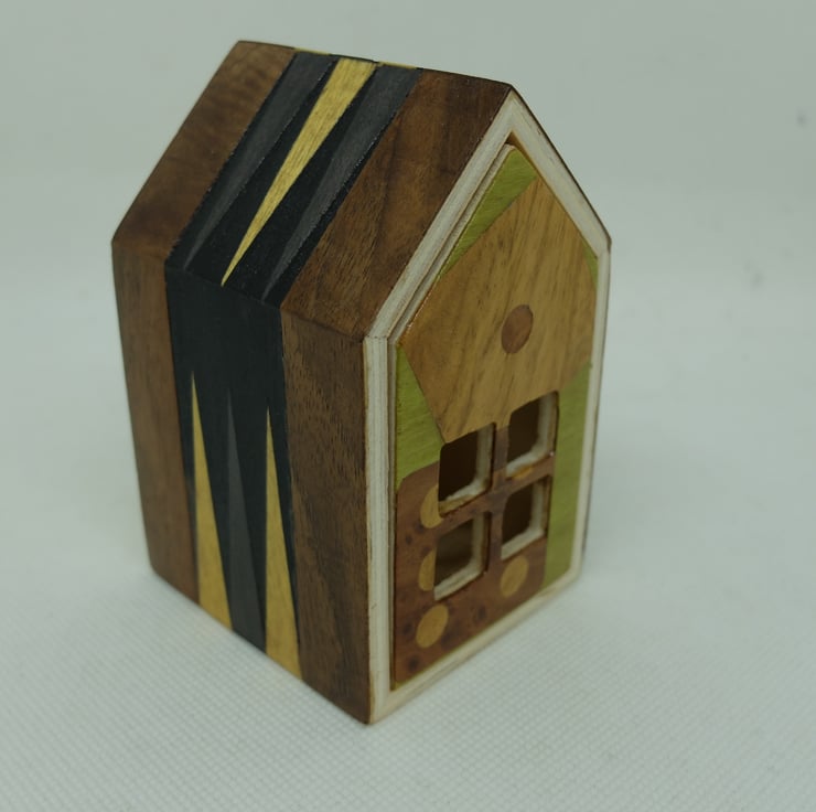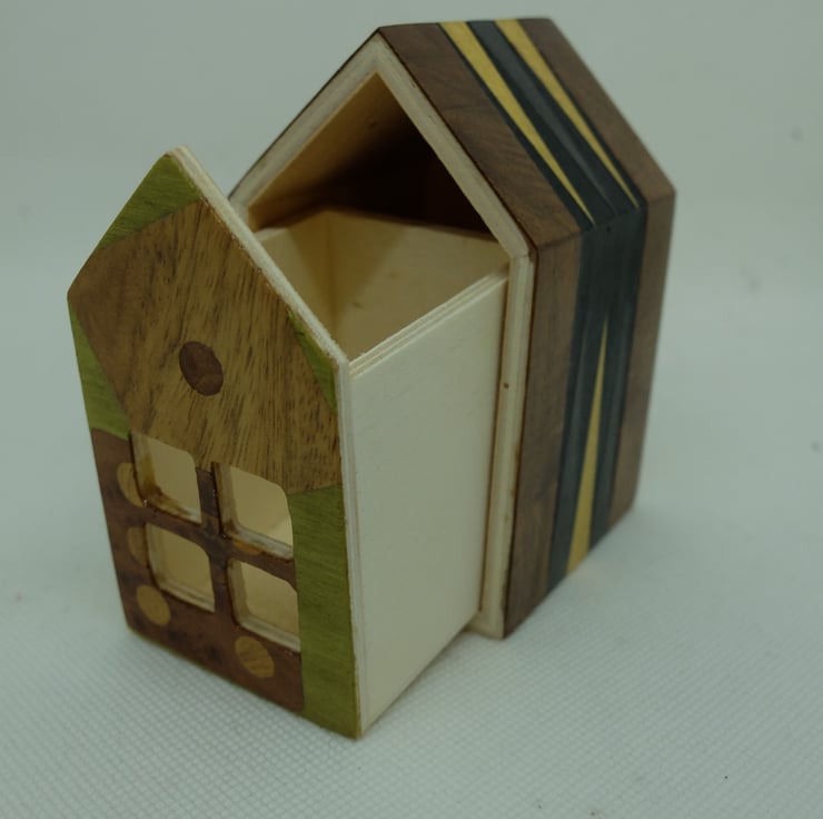 One of my small house shaped trinket boxes with a pull out drawer. Looks great with an electric night light inside.