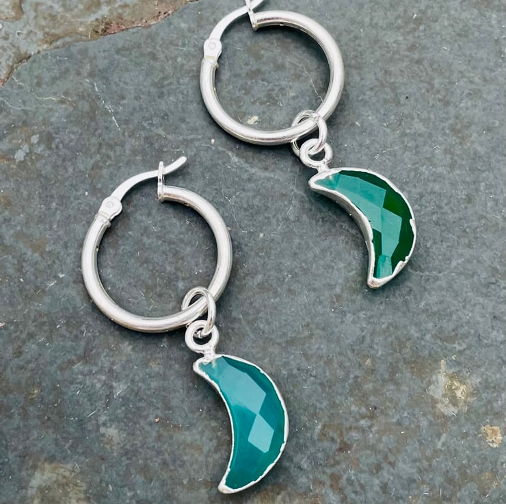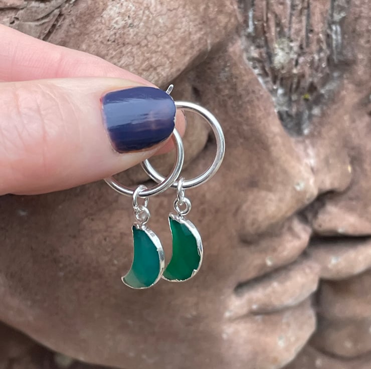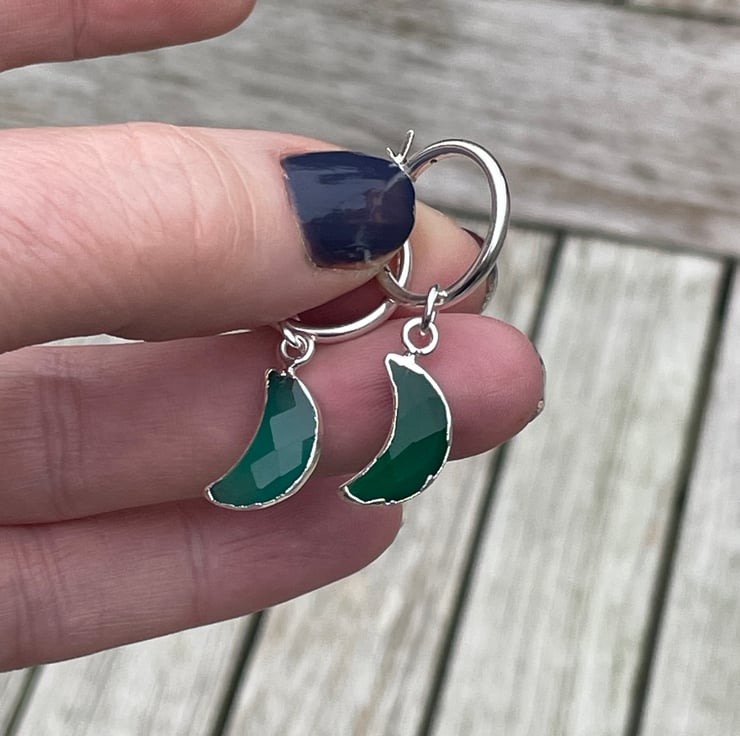 20mm Silver 925 Hoops with faceted crescent moon made from beautiful green onyx.