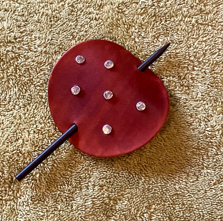 Hand Dyed Brown Leather Hair Stick Barrette / 6 decorative gemstone rivets