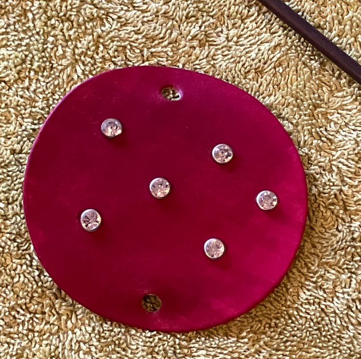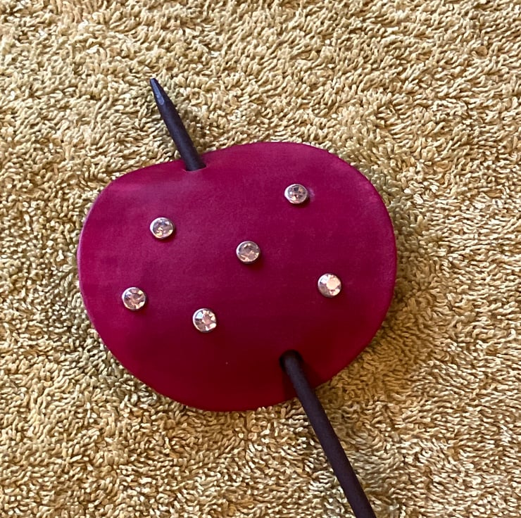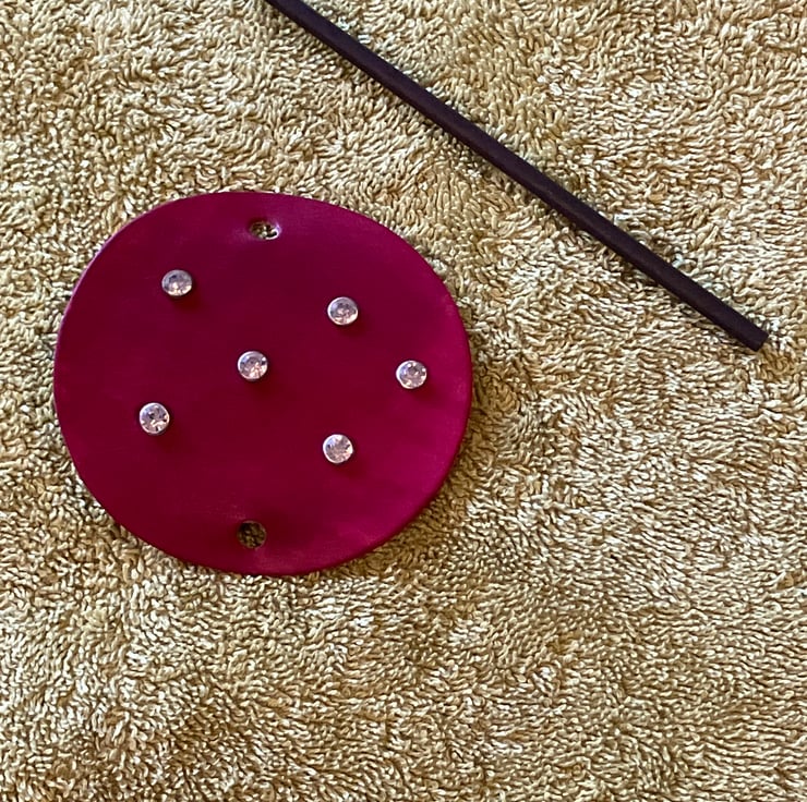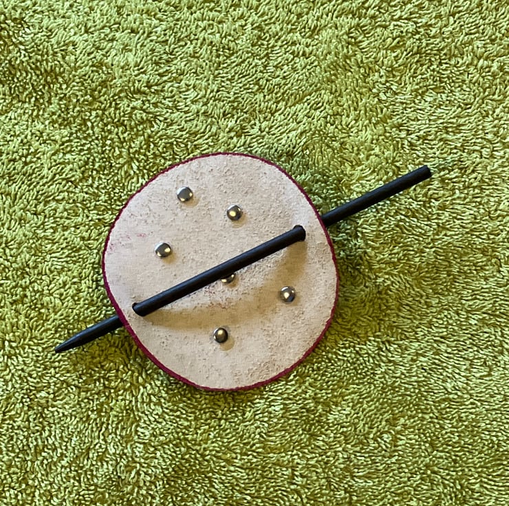 Oxblood Red Dyed Leather Hair Stick Barrette Circle Shaped Leather - 6 Gemstone Rivets