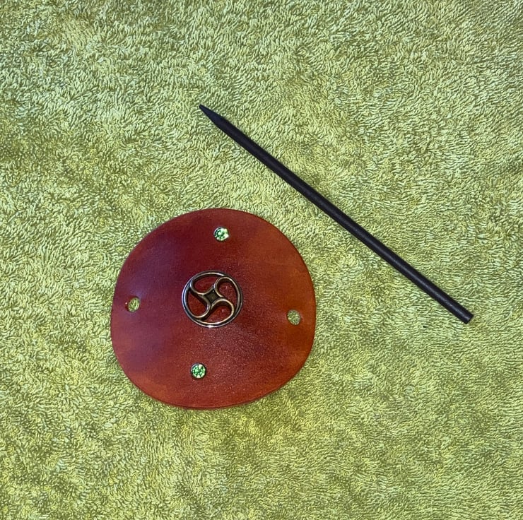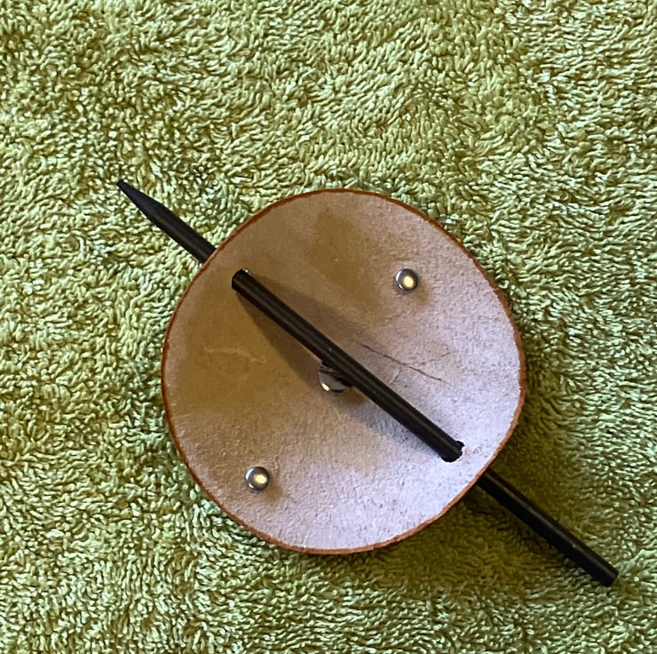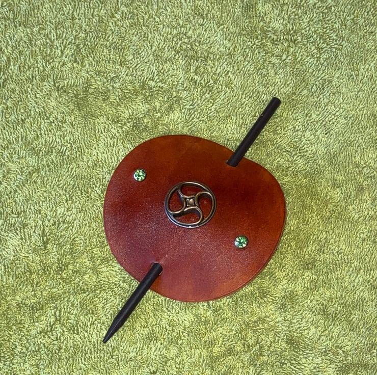 Dyed Brown Leather Hair Stick Barrette - Circle Shaped Leather (valve wheel)