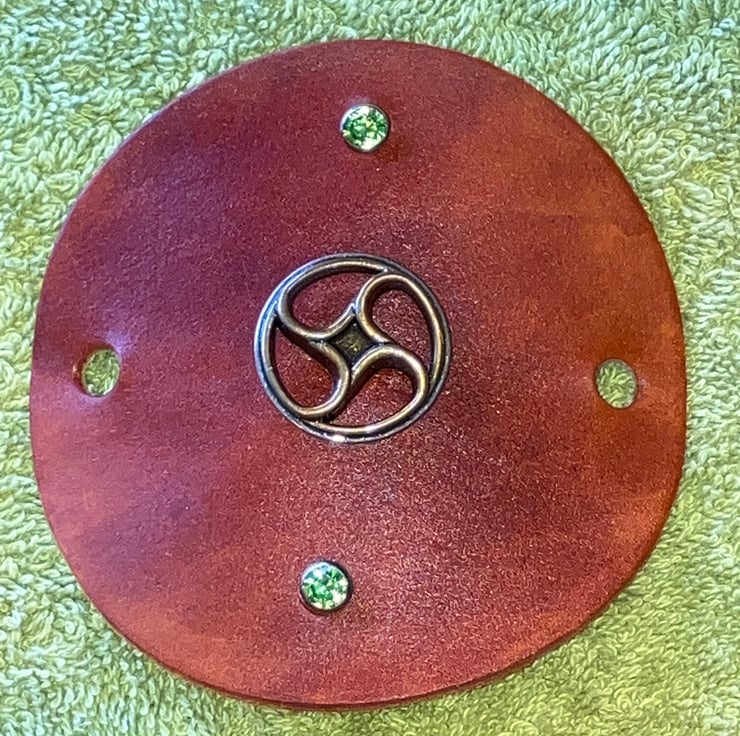 Hand dyed brown// acrylic finishing spray to seal in leather dye