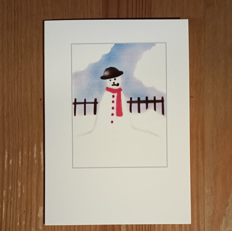 I made the original design for this handmade Snowman card from hand cut stencils based on one of my original drawings. I then airbrushed my design onto fine art card. The inks are no longer available so I made a scan of the card.