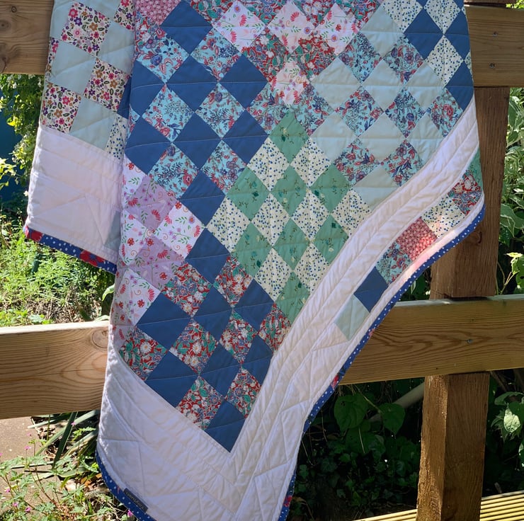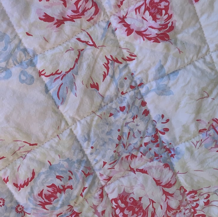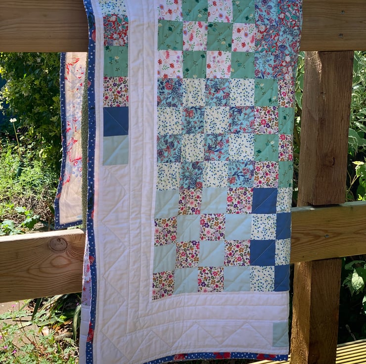 Charming handmade floral, 16 patch, checkerboard quilt.